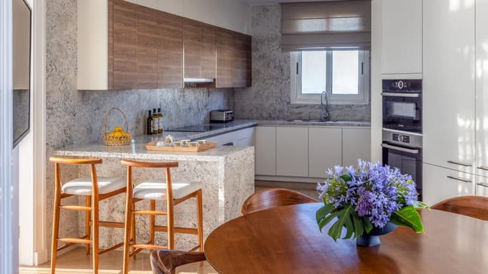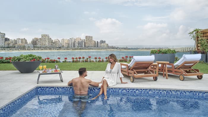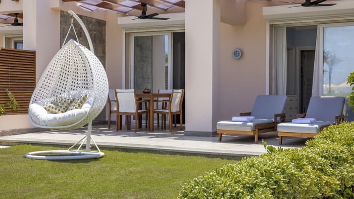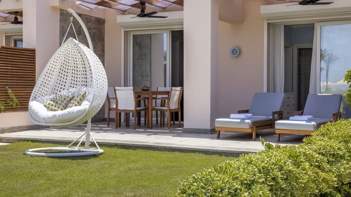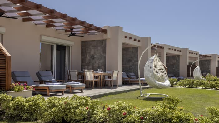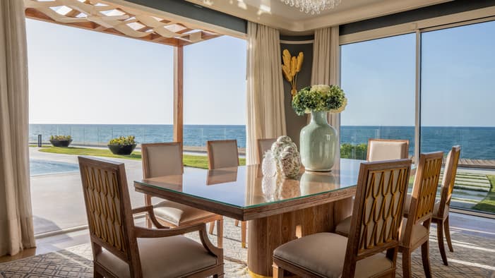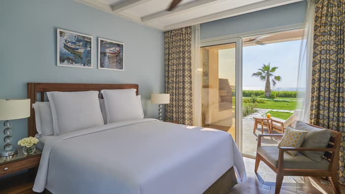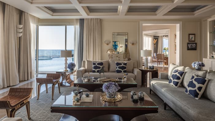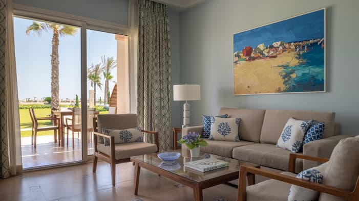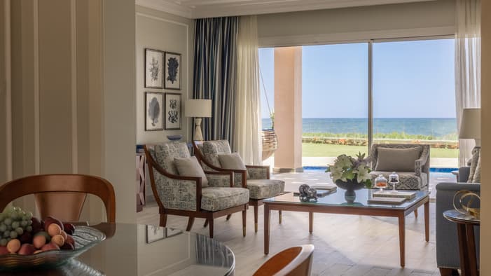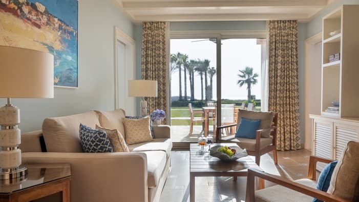 Overlooking the Mediterranean Sea, these bright and airy suites are perfect for small families or couples, with spacious living areas and furnished outdoor terraces or private balconies.