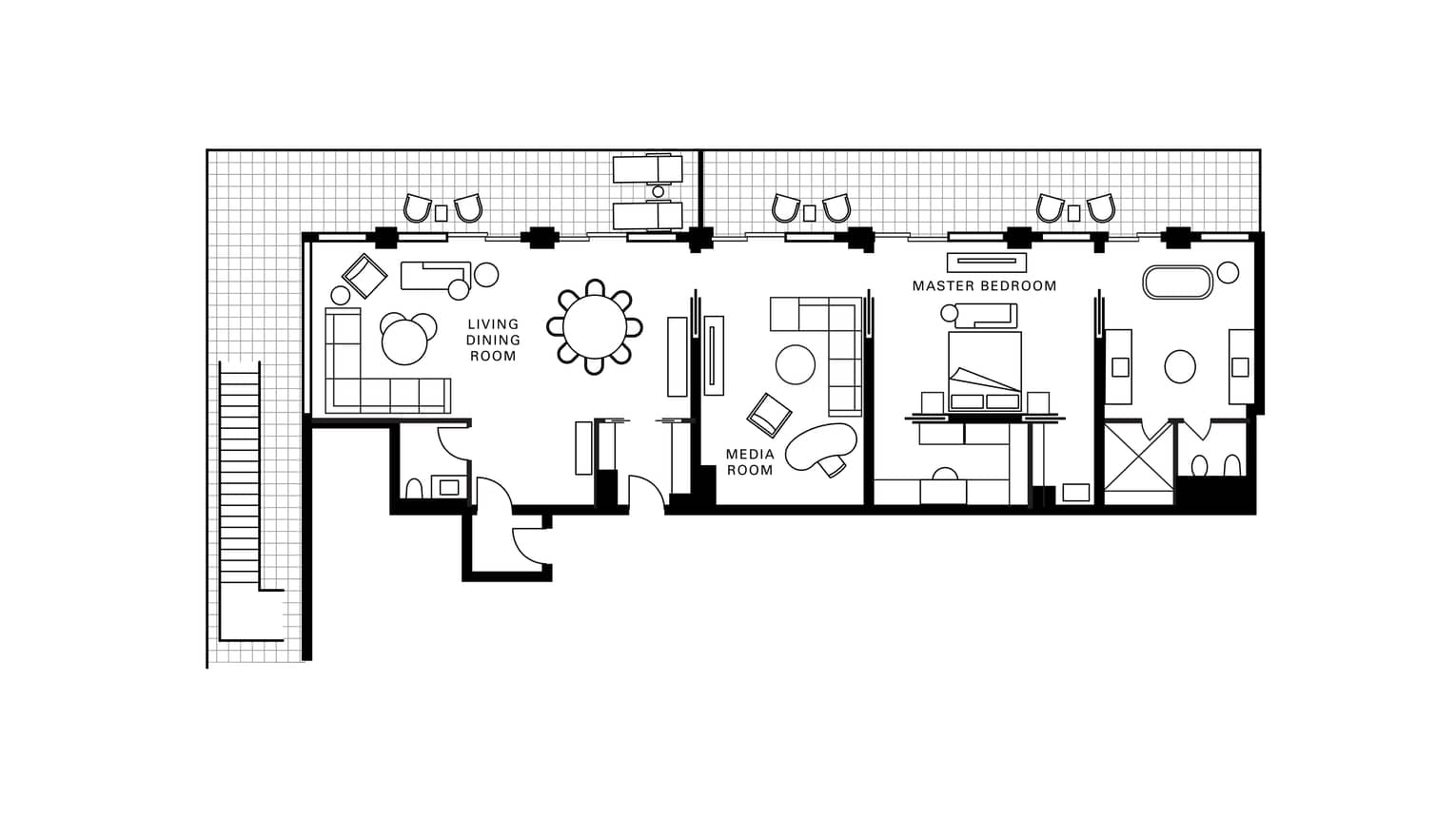 - تلفزيون مُدمج في مرآة الحمام (في غُرف أريون والأجنحة)