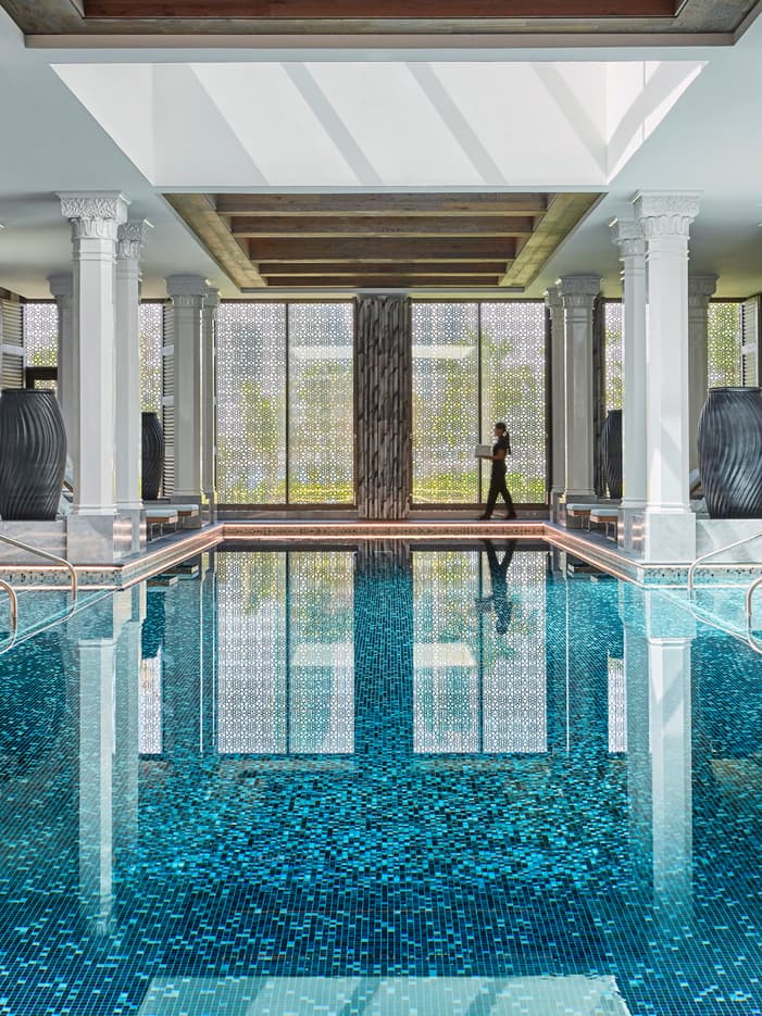 معالجات الأيورفيداابدؤوا رحلة رفاه جديدة مع معالجات الأيورفيدا المستوحاة من أقدم أنظمة الرفاه في الهند. عيشوا أجواء الصفاء والهدوء مع "شيرو دارا"، حيث تنساب الزيوت العشبية الدافئة بلطف على جبينكم أثناء استلقائكم على سرير التدليك الخشبي التقليدي. دلّلوا أنفسكم بجلسة "أبهيانغا"، وهي تدليك شامل للجسم لإعادة الحيوية وتخفيف التوتر وإرخاء العضلات، أو احجزوا تجربة "يوم الأيورفيدا المتكامل" لعيش تجربة علاجية لا تضاهى.