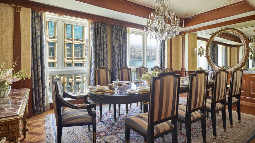 عيشوا حياة الملوك مع الأجنحة الملكية الفسيحة في فندق فورسيزونز القاهرة فيرست ريزيدنس، حيث يتوفر الموظفون الذين يقدمون خدمات على مدار 24 ساعة في اليوم، كل ما عليكم فعله هو اختيار مكان تناولكم الطعام، حتى لو كان على السرير.