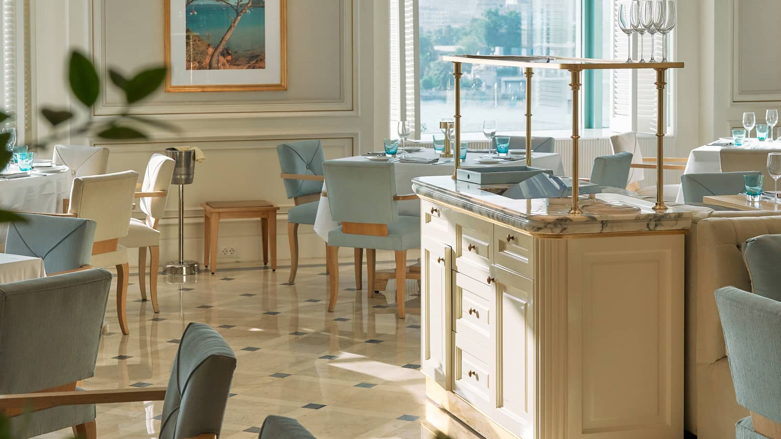 تحت سقف مرتفع من الزجاج الملون، يقدم مطعمنا الموجود في الطابق الأرضي مأكولات حديثة خفيفة، بما في ذلك السلطات الطازجة والشوكولاتة والحلويات الشهية التي لا تقاوم.