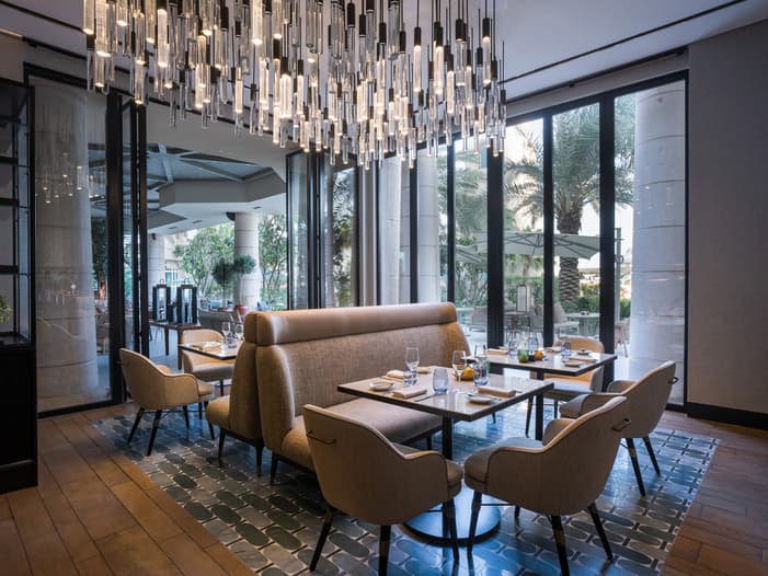 يا لها من ردهة أنيقة ومُفعمة بالأجواء الرائعة على الواجهة البحرية ما يجعلها مثالية لتناول الطعام في الأجواء المفتوحة أو للاستمتاع بأروع مناظر الغروب أو للتجمع مع الأصدقاء للاستمتاع بأشهى وجبات منطقة جنوب البحر المتوسط، والإطلالات على المحيط وإيقاعات الدي جي الرائعة.