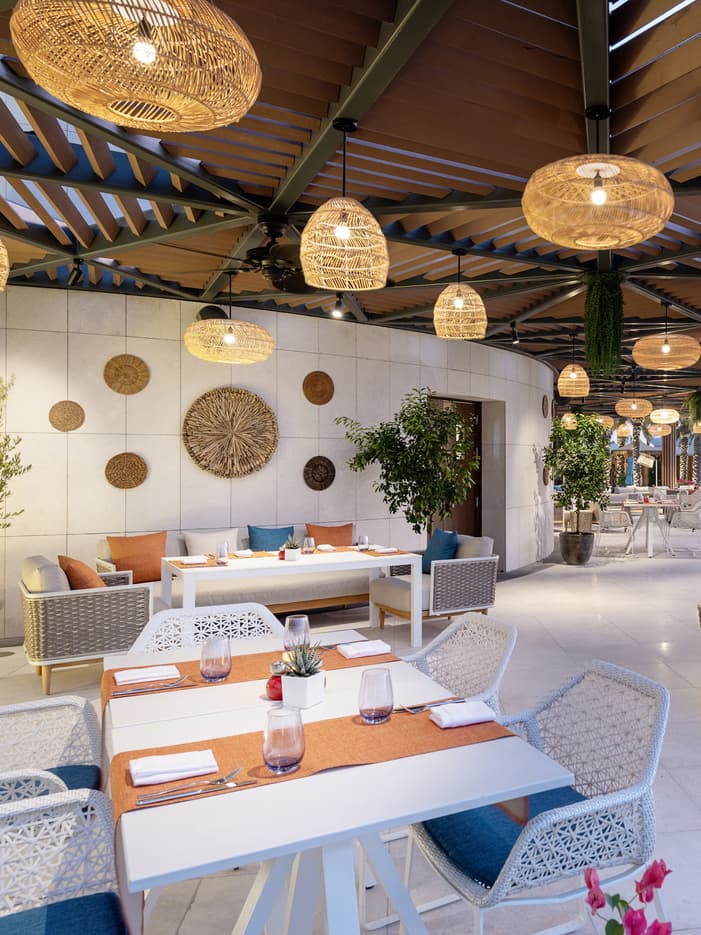 يا لها من ردهة أنيقة ومُفعمة بالأجواء الرائعة على الواجهة البحرية ما يجعلها مثالية لتناول الطعام في الأجواء المفتوحة أو للاستمتاع بأروع مناظر الغروب أو للتجمع مع الأصدقاء للاستمتاع بأشهى وجبات منطقة جنوب البحر المتوسط، والإطلالات على المحيط وإيقاعات الدي جي الرائعة.