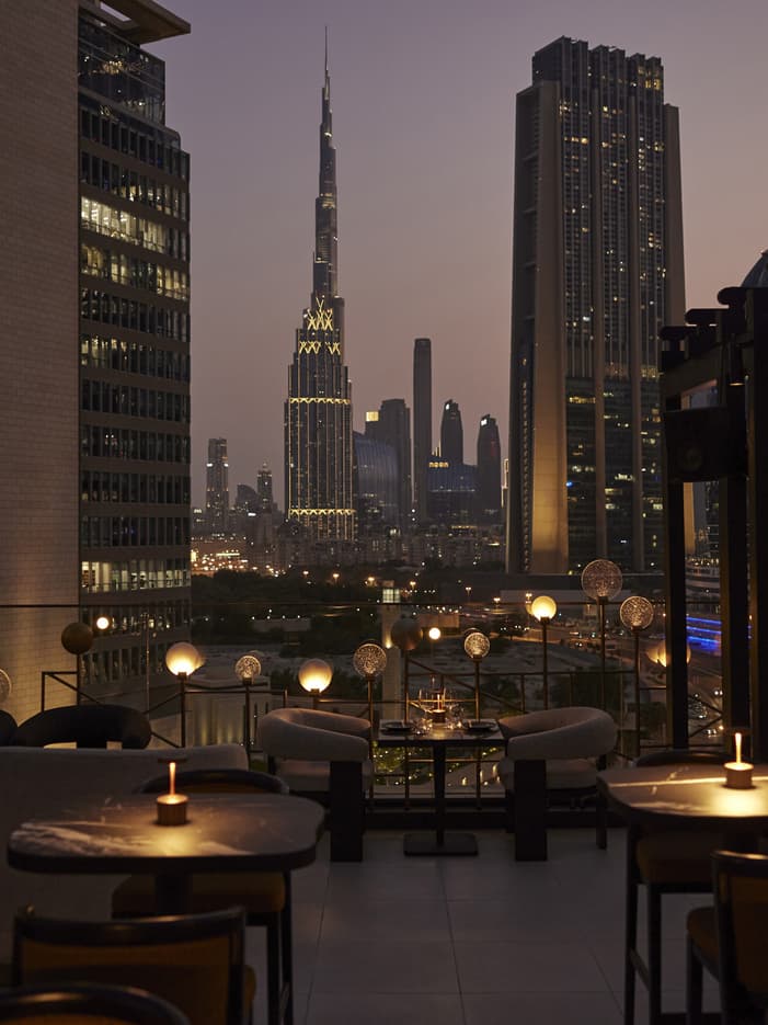 ستحظون بإطلالة على المدينة وغروب الشمس الذهبي أثناء تناول الطعام بجانب المسبح فوق السطح - مع قائمة طعام من المقبلات من الشرق الأوسط والسلطات المحببة إلى قلوبكم والكوكتيلات التي أُعدّت بمنتهى الإبداع والإتقان.