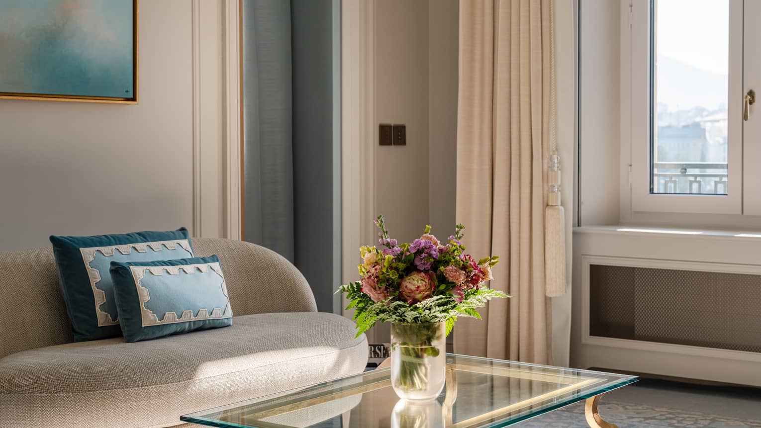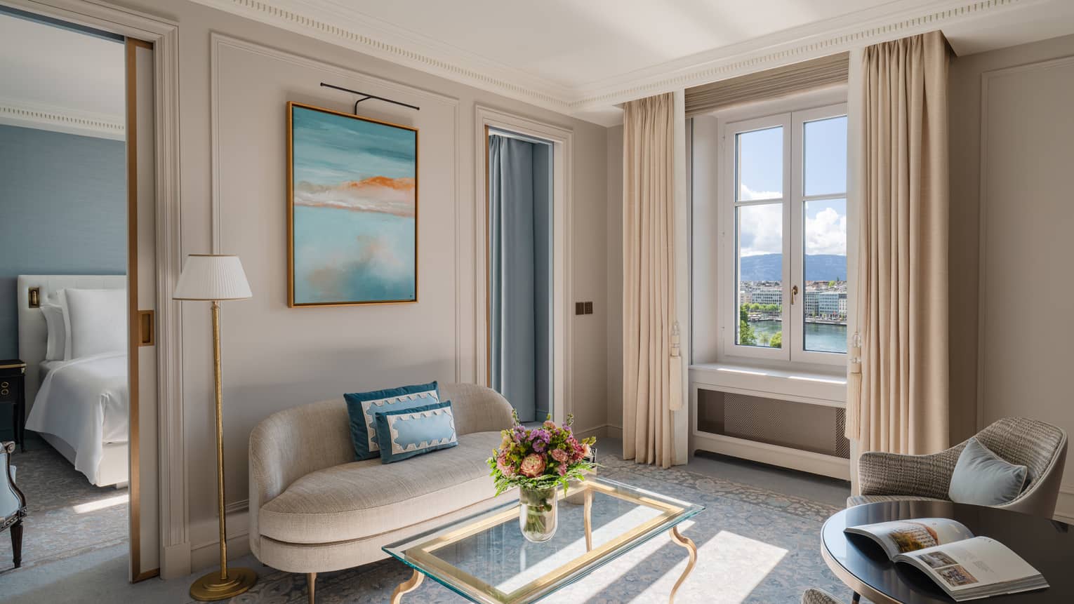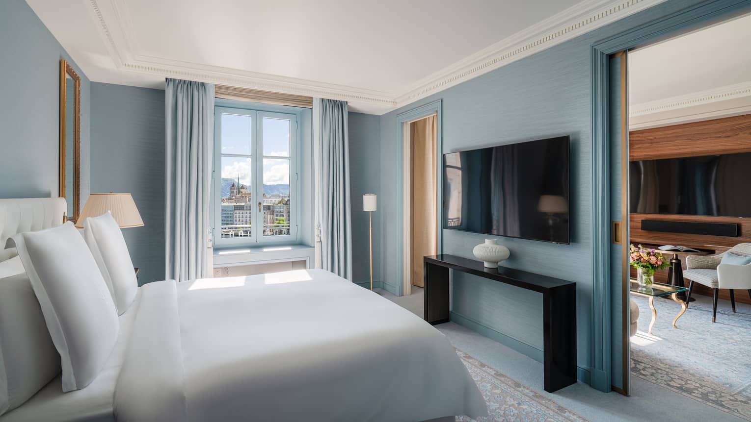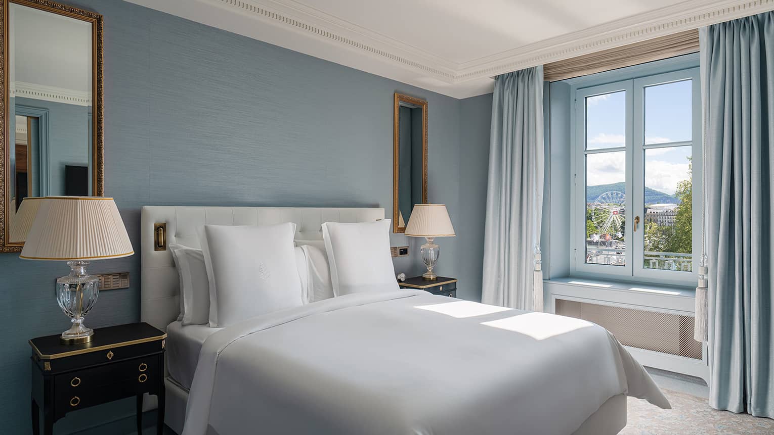 تم تصميم هذه الأجنحة بطريقة مدروسة للوصول إلى أقصى درجات الاسترخاء الهادئ والحياة السلسة، حيث تستقبلكم مساحات مضيئة وأسقف شاهقة ونوافذ واسعة تُحيط بإطلالات هادئة على بحيرة جنيف أو المدينة. وتُضفي درجات الأزرق الفاتح والأخضر الرقيق، المستوحاة من لوحة الألوان الطبيعية لبحيرة ليمان، خلفية مُريحة تعكس الأناقة الفرنسية التي اشتهر بها المعماري بيير-إيف روشون. وقد جرى تصميم كل جناح ليجسّد مفهوم المساحة المعيشية الحقيقية بروح دافئة وإيقاع هادئ يُشبه أجواء الإقامة الخاصة، مع تناغم سلس يدعوكم للاسترخاء والاستجمام في أجواء آسرة.