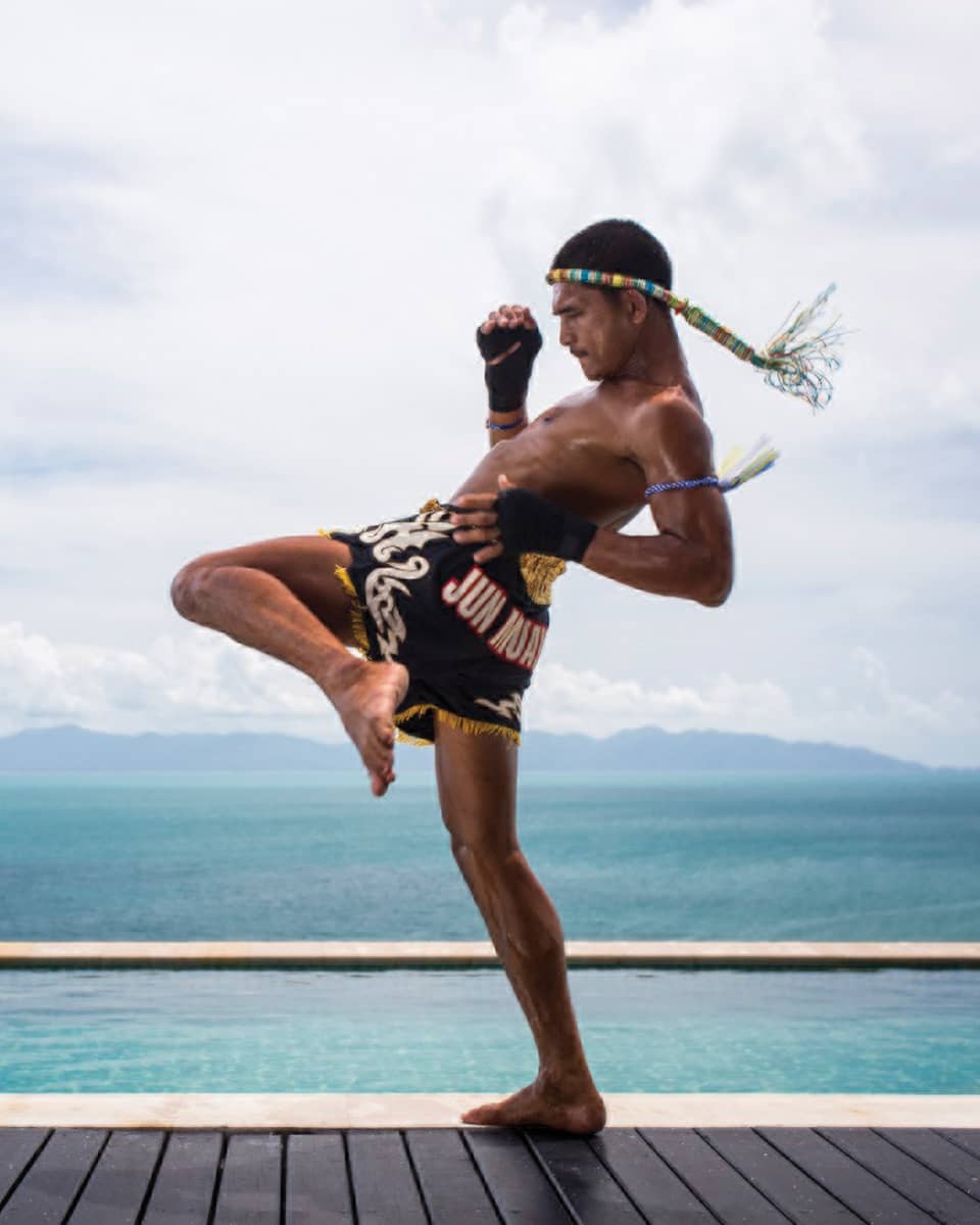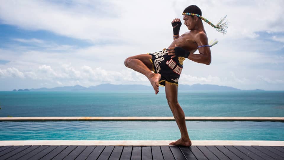 ادخلوا إلى الحلبة المواجهة للبحر في الهواء الطلق للتدريب مع ملاكم محترف مواي تاي، حيث تعد هذه الرياضة التقليدية تدريباً رائعاً لكامل الجسم.2 / 4