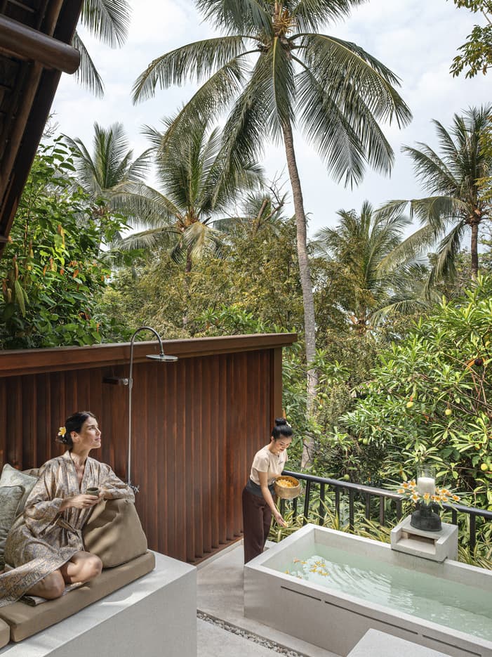 اكتشفوا علاجاتنا المُصمّمة خصيصاً لاحتياجاتكم والعلاجات التي تُساعدكم على الاسترخاء والمستوحاة من محيطنا الاستوائي والمتجذّرة في العادات والتقاليد التايلندية القديمة، حيث يُساعدكم خبراء الرفاه لدينا على إعادة الوصال بين الجسم والعقل.