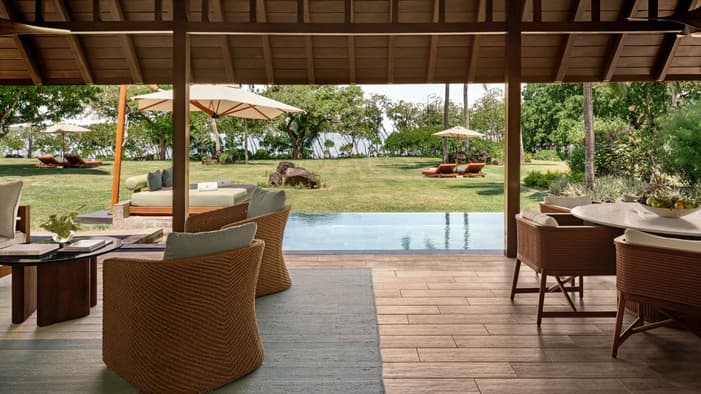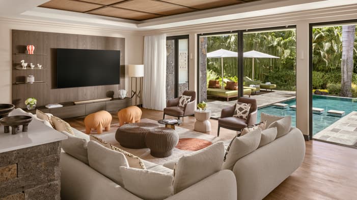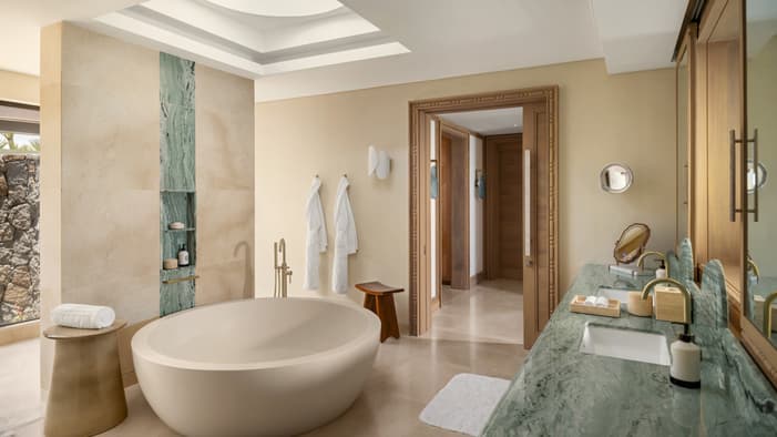 عِيشوا قمة الفخامة في منتجع فورسيزونز موريشيوس في أناهيتا، حيث تنتظركم فلل استثنائية مزوّدة بأحواض سباحة خاصة وإطلالات آسرة على المحيط، إلى جانب خيارات إقامة سكنية حصرية. كل فيلا صُمّمت لتجمع بين رحابة المساحات الداخلية والخارجية، مع دُش في الهواء الطلق وتراسات مطلّة على الحدائق، أو غابات المانغروف، أو البحر، أو الشاطئ. سواء كنتم تبحثون عن الاسترخاء أو عن أجواء مميزة للترفيه، ستجدون في هذه الفلل ملاذاً هادئاً يمزج بين سحر الثقافة المحلية ورفاهية الراحة العصرية. استمتعوا بأروع تجارب الإقامة في موريشيوس، مع جولة غولف يومية مجانية نقدمها لكم. فيلا أحلامكم في موريشيوس بانتظاركم.