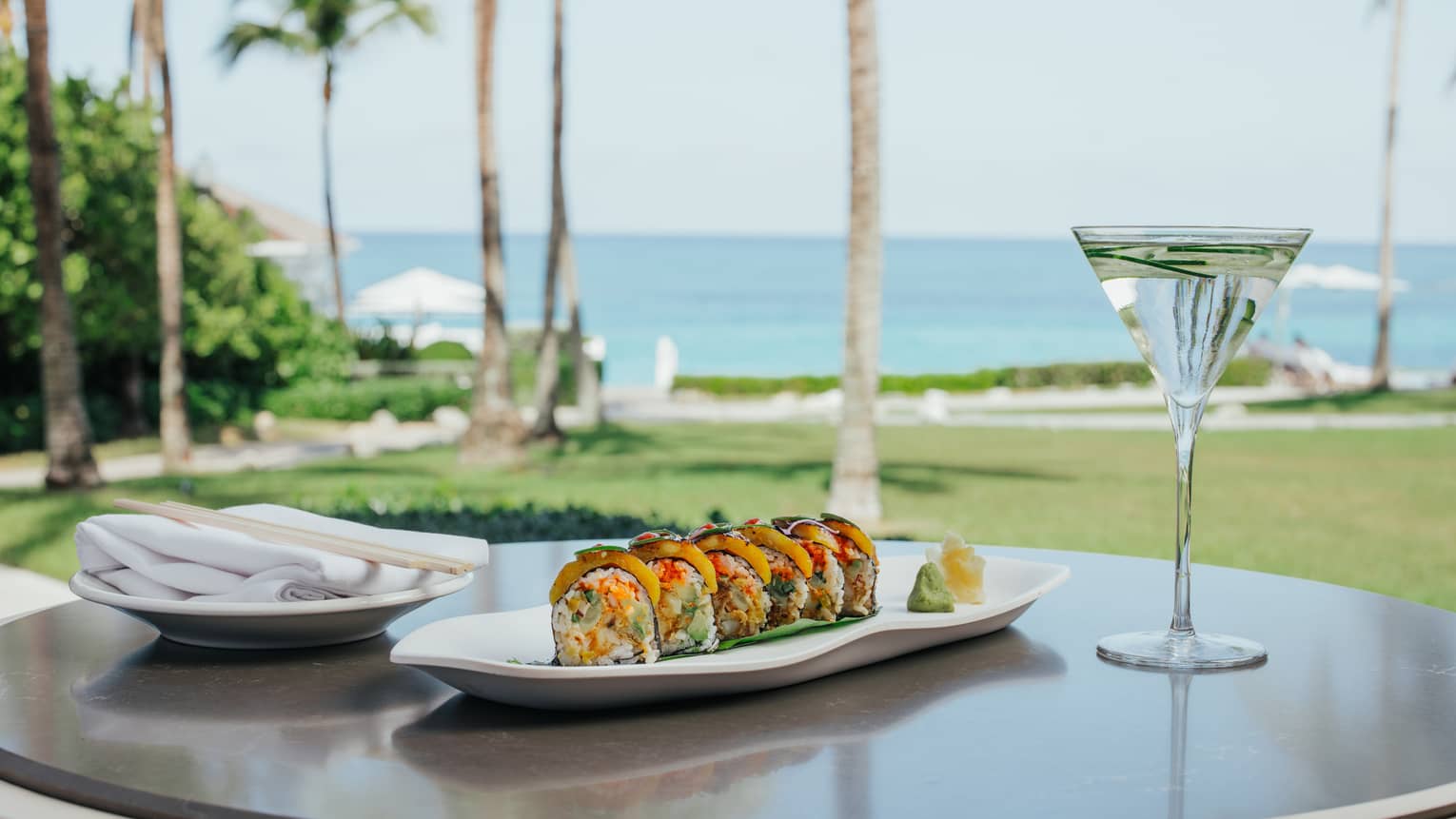 تشكيلة منتقاة من السوشي والساشيمي واللفائف المميّزة، تُقدَّم إلى جانب كوكتيل هيڤنساكي ساكيتيني.