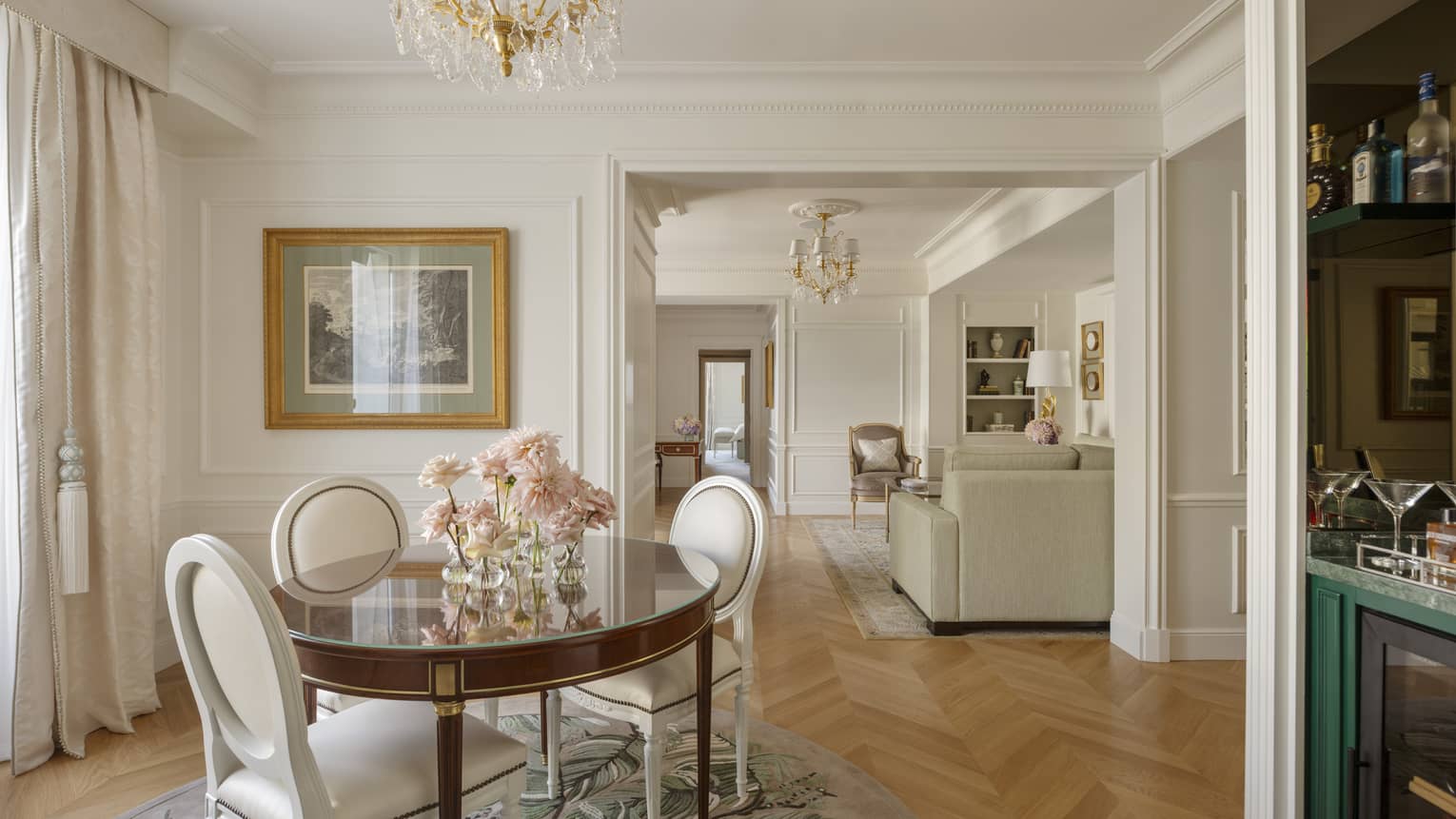 تخيّلوا شقة باريسية أصيلة تم تجديدها مؤخراً لتجمع بتناغم بين الأناقة الخالدة والطابع العصري. يغمر الضوء الطبيعي المساحات الرحبة، مانحاً شعوراً بالسكينة والراحة المنزلية.يُعد جناح بريميير الخيار الأمثل لإجازة رومانسية أو لإقامة ممتدة، حيث يجمع بين الراحة والخصوصية والوظائف العملية. تمتد غرفة المعيشة الفسيحة ومنطقة تناول الطعام إلى شرفة واسعة، بينما تكشف غرفة النوم عن شرفة خاصة بإطلالة ساحرة تخطف الأنفاس على برج إيفل.