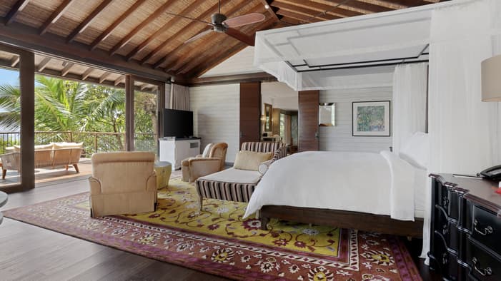 تقع أجنحة المنتجع إما على مُنحدر التل المطل على خليج بيتيت أنس أو على بعد خطوات من شواطئ المحيط الهندي ذات الرمال الناعمة وتتوفر بها وحدات دش في الهواء الطلق وحمّامات سباحة خاصة وتراس ومنطقة طعام في الهواء الطلق.