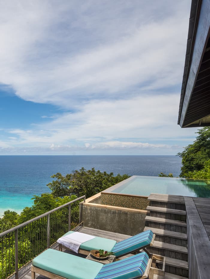 إطلالة خلابة على المحيط الهندي والغابة الاستوائية تُقدم سيرينيتي فيلا أروع المناظر والإطلالات في المنتجع، بالإضافة إلى شعور لا يُضاهى من الخصوصية.