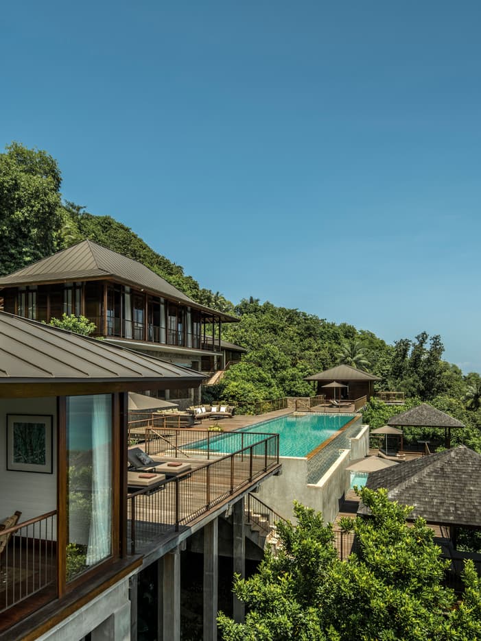1,900 - 2,500 متر مربع (20,451 - 26,910 قدماً مربعاً) تشمل تراساً خارجياً كبيراً مع حوض سباحة خاص لامتناهي. القسم العلوي من المنتجع