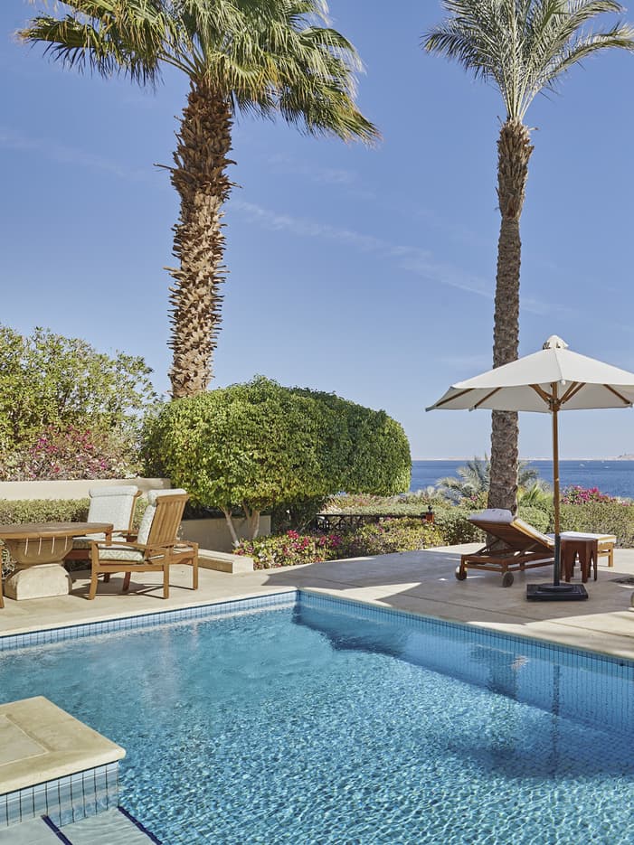 استمتعوا بتجربة رئاسية حقيقية في هذا الملاذ الفخم المكوّن من غرفتين، ملاذ مستقِل بذاته على شاطئ البحر يضُم حوض سباحة خاص وحديقة خاصة. كما أن غِناه بالترف العربي التراثي يُضفي لمسة خاصة إلى مناطق المعيشة والطعام، وتنساب هذه الفخامة إلى الخارج حيث الترّاس الفسيح المُطل على البحر. إنه المكان المثالي لإقامة حفلات العشاء في الهواء الطلق أو الاستمتاع بأجمل السهرات المسائية.