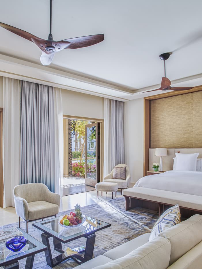 تتميّز وحدة الإقامة المُستقلة هذه والمُكونة من ثلاث غرف نوم بالروعة والتطوّر، وتُعتبر أكبر جناح لدينا والأكثر فخامة على الإطلاق حيث الحداثة كما ينبغي أن تكون في فورسيزونز. تبدأ وسائل الترفيه الخارجية من الشرفة، حيث يُوجد حوضَيْ سباحة على بعد خطوات معدودة من الشاطئ. كما تتضمّن الفخامة الاستثنائية غرفة لياقة بدنية وغرفة علاج سبا ومساحة مكتبية وغرفة ملابس كبيرة.