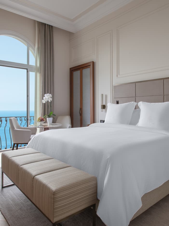 تُثري غُرف الضيوف المُشرقة والمليئة بالهواء العليل كل لحظة من لحظات إقامتكم معنا، عبر إطلالة بانوراما مترامية على خليج تاورمينا. استمتعوا بعطور الليمون والبرتقال الأخّاذة أثناء تناثر شذاها مع نسائم الهواء. (يُرجى العلم بأن الصور تُمثّل نموذج المساحة فقط، وأن بعض الغُرف لا تحتوي على بلكونة جوليت.)