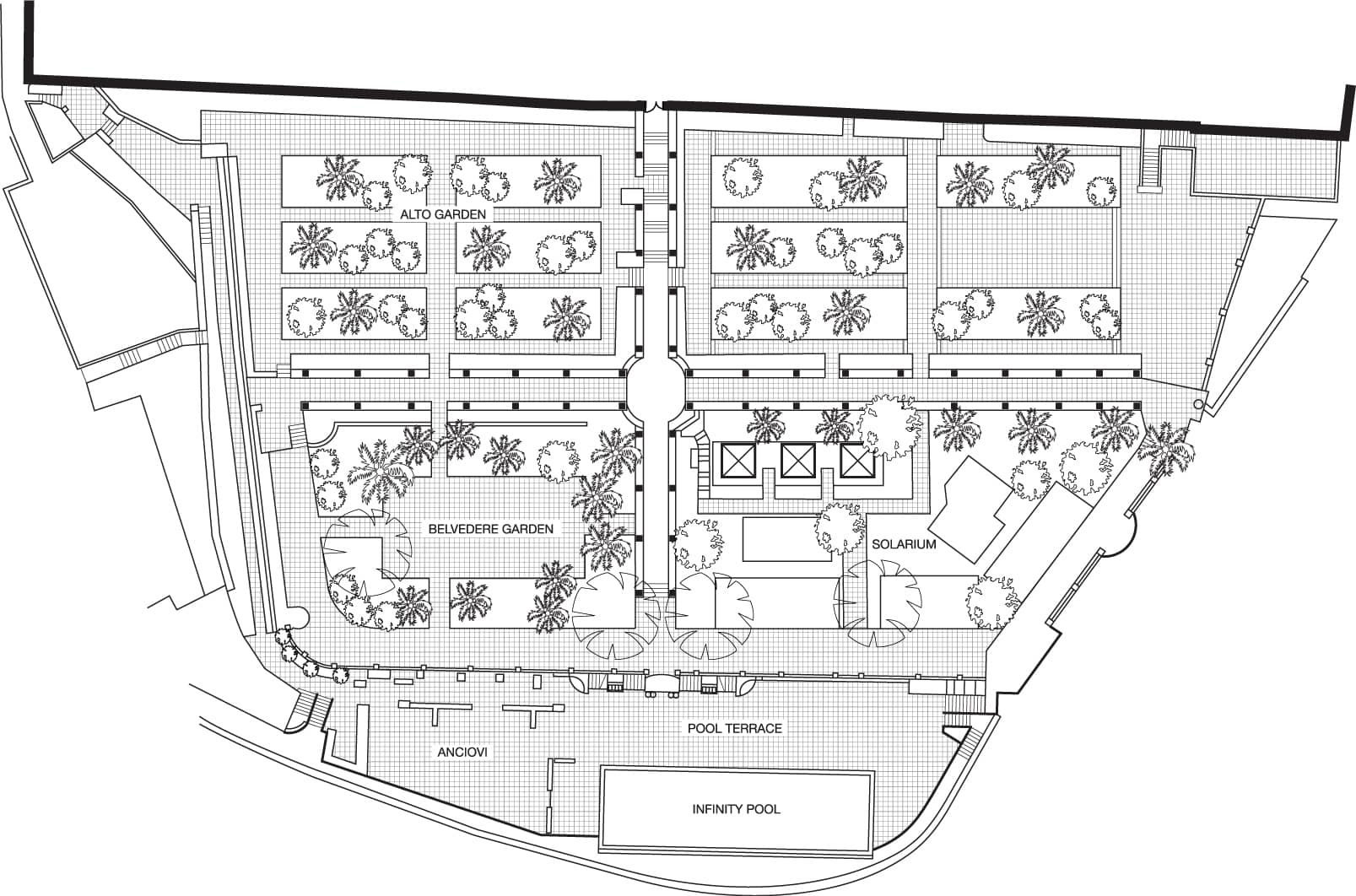 Our largest garden area is lush with palm trees, greenery and gorgeous flowers. Beautiful for cocktails, dinner or a special gathering, the garden provides a dramatic lookout for gazing across the sea, beaches and Mount Etna. Savour the sun-splashed Mediterranean atmosphere.