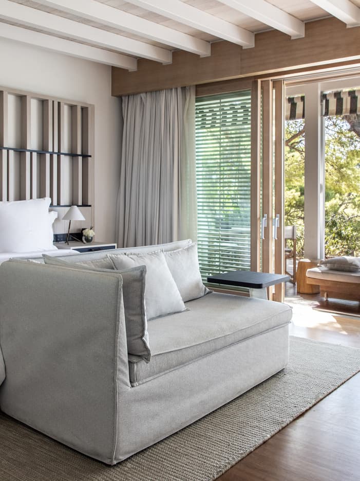 Nestled among the trees along the coastline, the Garden Bungalow combines modern interiors with design elements inspired by the original 1960s Astir Palace aesthetic. Opening onto a generous private garden terrace, it offers a peaceful retreat perfect for lounging and soaking in the natural beauty of the Riviera.