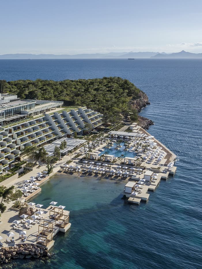 Arion BallroomFloor-to-ceiling windows frame three sides of this expansive ballroom, featuring Saronic Gulf views, a private entrance, and connections to its own terrace and pre-function room.