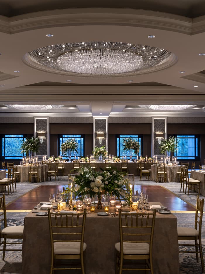 MadisonBy day, natural light fills the room through architectural windows. By night, crystal chandeliers dazzle from soaring ceilings.