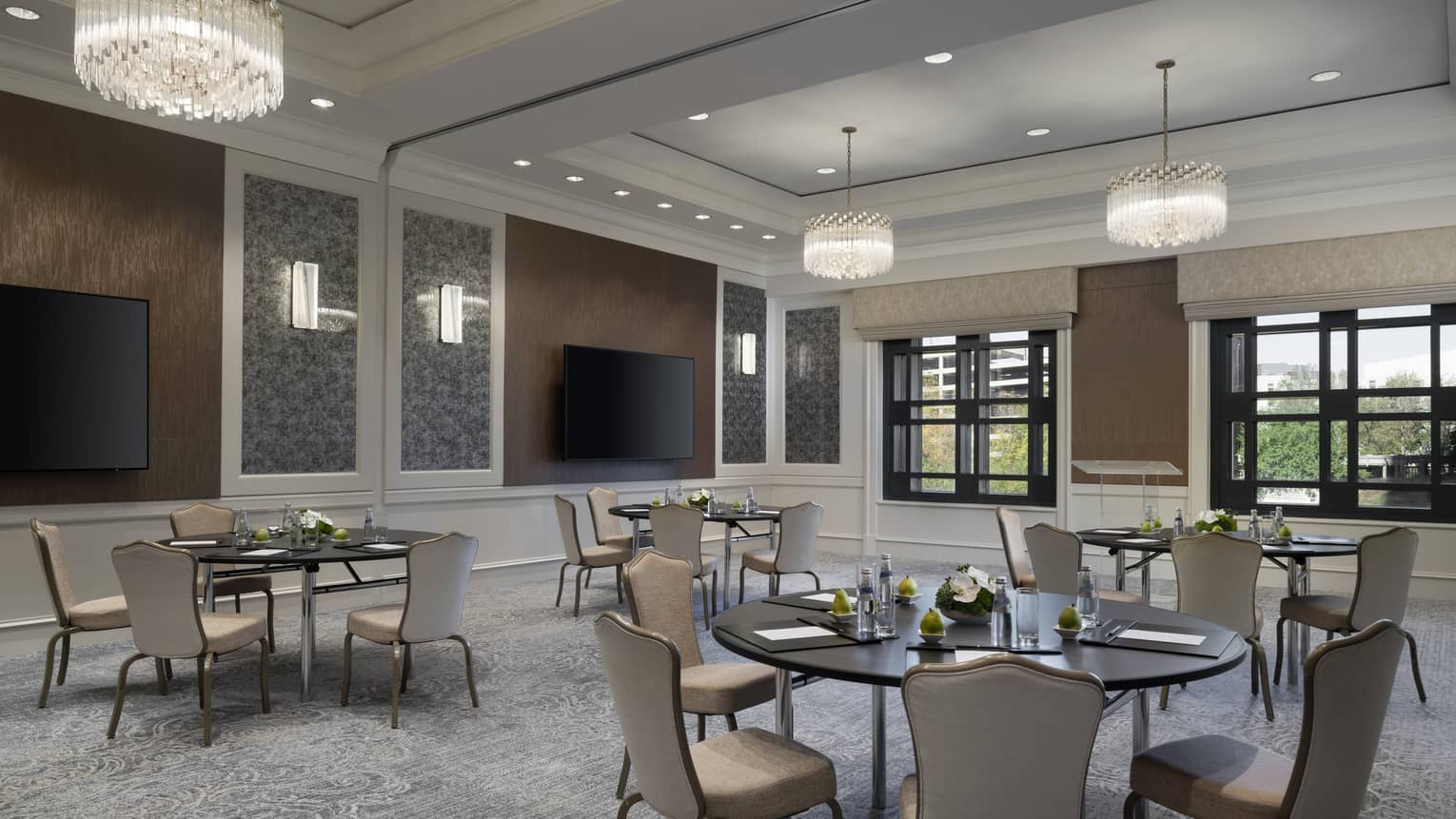 A modern conference space with views of Atlanta through the oversized windows, the Madison Room can also be divided for a more intimate gathering space.