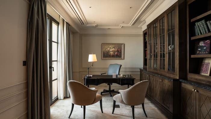 Presidential suites offer a distinctive take on luxury accommodations in Baku, inspired by the elegance of historic Baku mansions. Expect ornate millwork, grand salons and refined spaces designed for entertaining in timeless style.