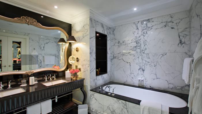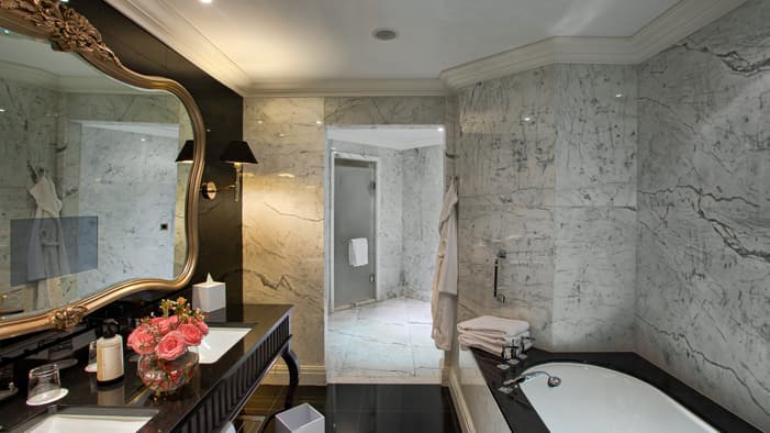 Taking a cue from our building’s architecture, our hotel rooms in Baku feature a modern take on the ornate Parisian-based beaux arts style, using muted colour palettes to balance the more dramatic details.