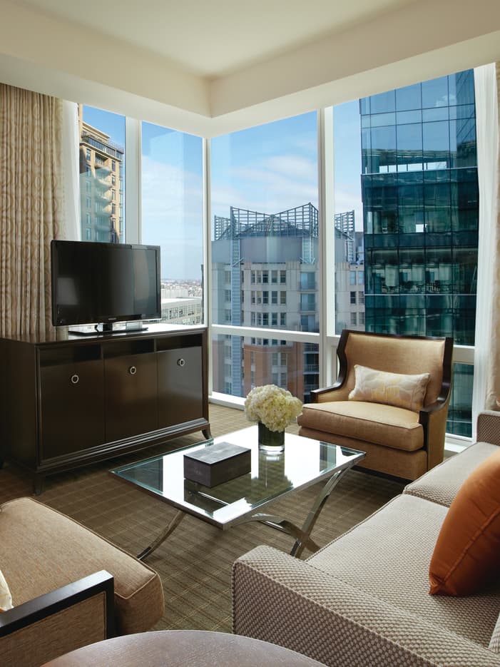 Full of thoughtful extras, these elegant corner suites sleep three comfortably, with doors to seal off the bedroom for extra privacy.