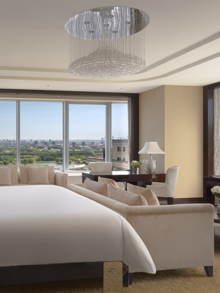 Known as the “Palace in the Sky,” this three-bedroom, ultra-luxe suite takes up our entire 27th floor. Screen a movie in the media room, entertain on the rooftop terrace, and watch a private chef prepare a meal in the open kitchen for a special evening. Custom finishes, original artwork and panoramic views of Beijing are the proverbial icing on the cake.