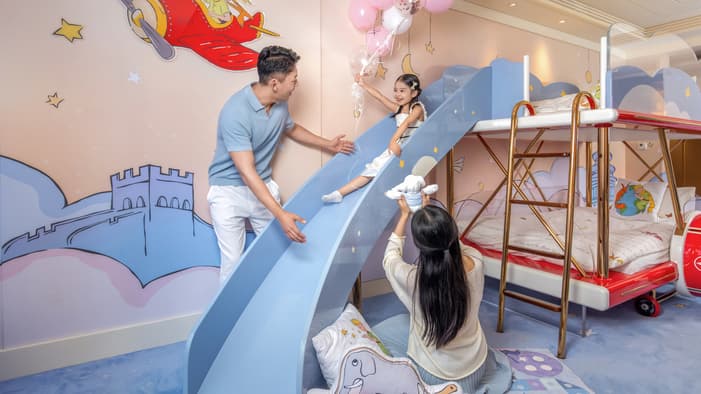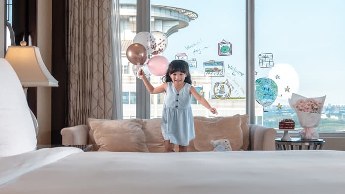 Connecting RoomsDesigned for multi-generational families or groups travelling together, our connecting rooms offer a seamless blend of shared and private spaces. A double-lock door connects two rooms, expanding the living area. Configurations include a Deluxe Room City View with two twin beds connecting to the Chairman Suite, and same-category options are available with a Deluxe Room City View, Club Room River View and Premier Room Skyline View.