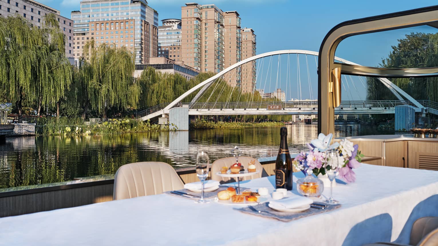 Explore the tranquil waters of the Liangma River on a boat cruise, marvelling at the lotus blossom silhouettes and willow boughs as they sway in the breeze.