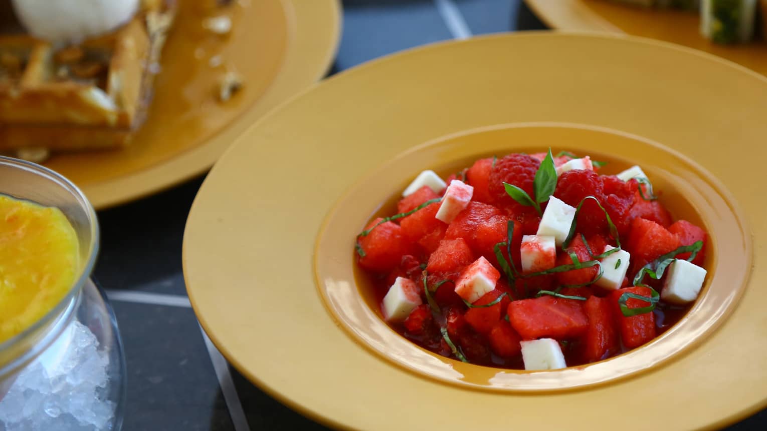 WATERMELON FRUIT SALAD WITH HALLOUMI AND FRESH BASIL