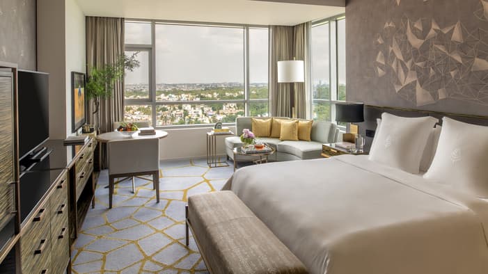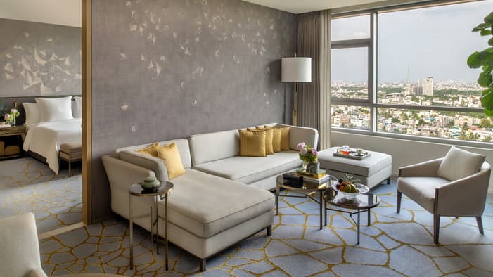 Discover unparalleled luxury at Four Seasons Hotel Bengaluru at Embassy ONE. Embrace the cosmopolitan spirit of Bangalore in our opulent suites and rooms, blending indoor-outdoor spaces with lush greenery and panoramic city views. Experience exclusive amenities, personalized service and innovative technology in an elegant setting. The prestigious Presidential Suite offers unmatched luxury for an extraordinary stay. Perfect for discerning business travelers and vacationers, our Hotel epitomizes sophistication and comfort.