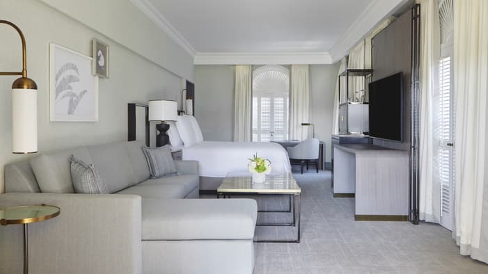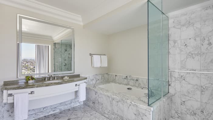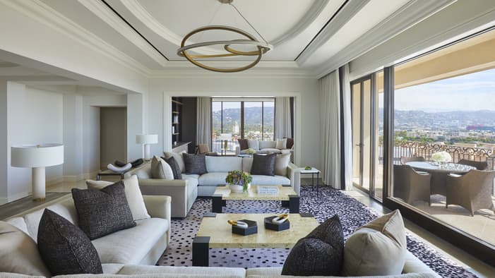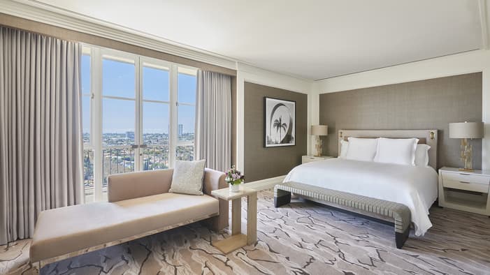 Beverly Wilshire, A Four Seasons Hotel offers luxury accommodations including a wide array of stunning guest rooms and suites. Indulge in our stylish and well-appointed guest rooms offering great views of Rodeo Drive, our outdoor Mediterranean-style pool or the porte cochère. Enjoy the ultimate suite experience with our spacious Beverly Hills hotel suites which include views of the city and hotel, as well as balconies upon request, coupled with separate sleeping and living spaces. Our specialty suites, including our penthouse suite and two presidential suites, offer unparalleled luxury.
