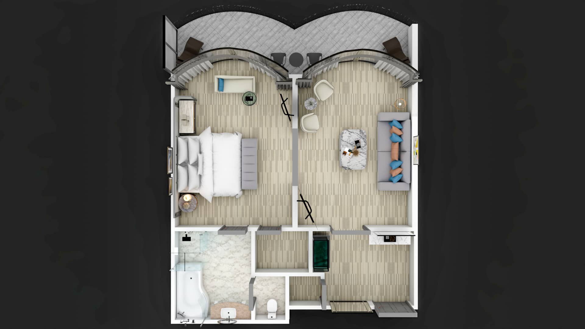 Can be configured into a two-bedroom suite