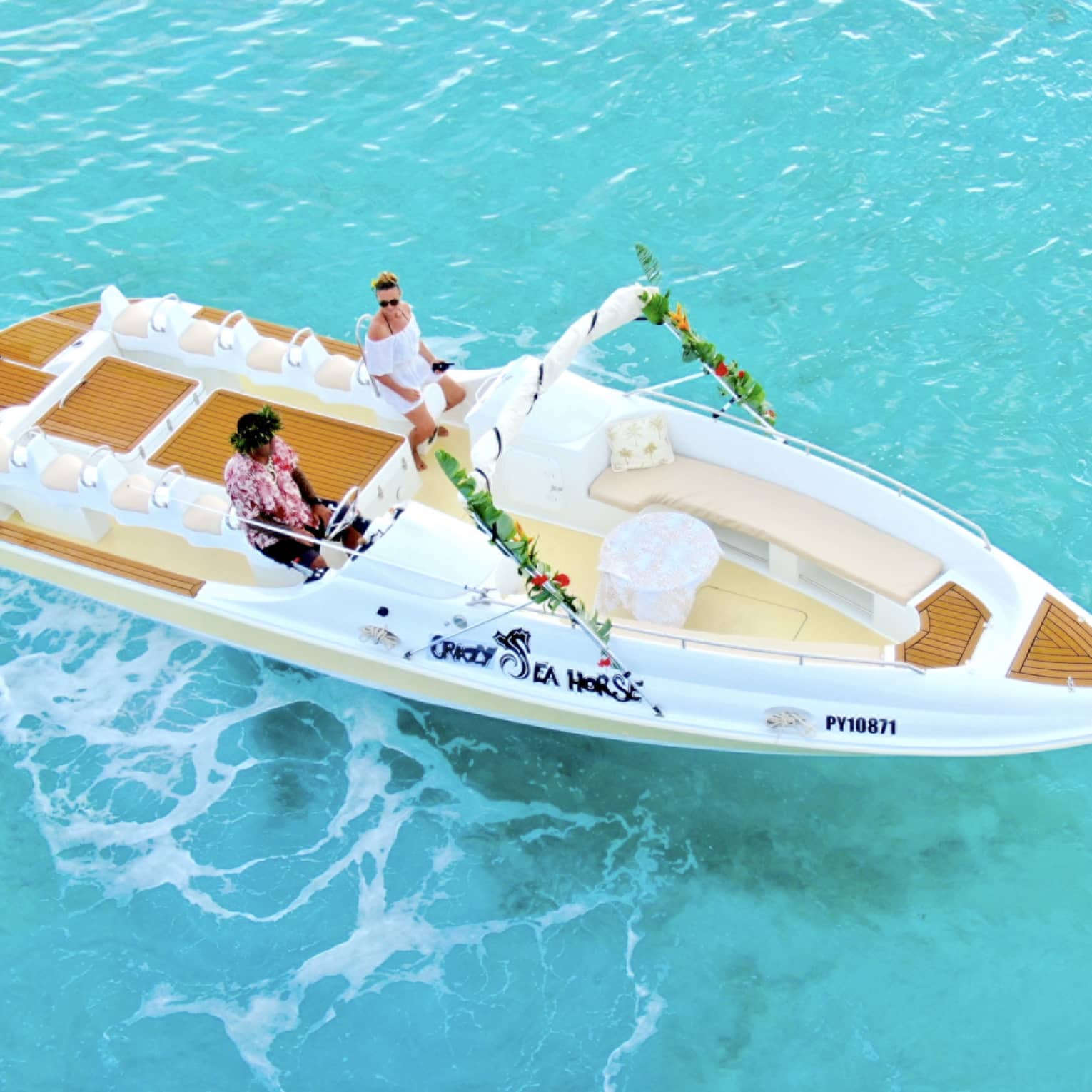 Private Snorkelling Tour with Tahitian Oven Experience Hop aboard a deluxe outrigger canoe to discover Bora Bora, its culture and traditions. Depart on a memorable journey to discover the island, lagoon and legends of the fenua (land), kept in rhythm by the sounds of the ukulele. Relax on the trampoline or sun bed as you cruise above the clear turquoise waters, then choose between a local lunch on the motu or "ahima'a" (Tahitian oven experience). Learn More