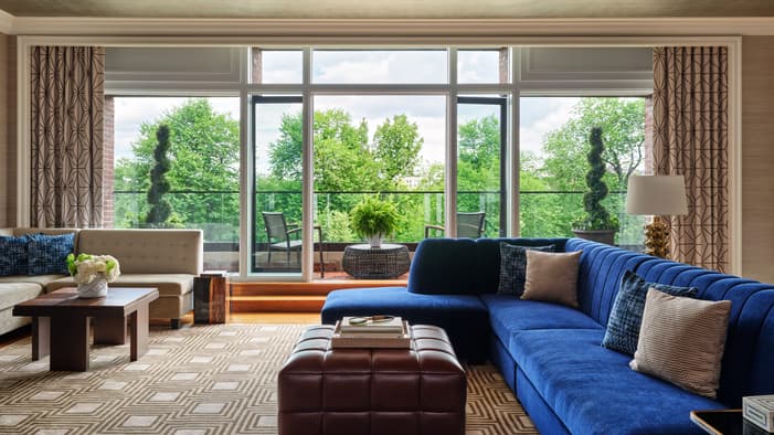 Furnished with contemporary décor and soothing, soft gold hues, these guest rooms offer peaceful views of The Sanctuary, a quiet, walled garden terrace on the 6th floor of the Hotel.