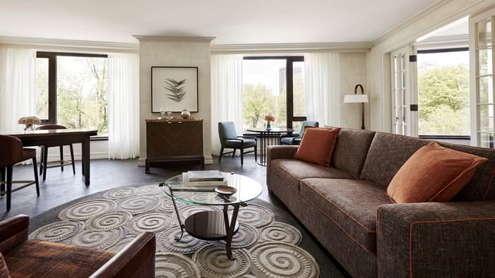 Oversized bay windows look out to Boston's Public Garden in these spacious suites, which feature a cosy living area and secluded alcove bedroom.