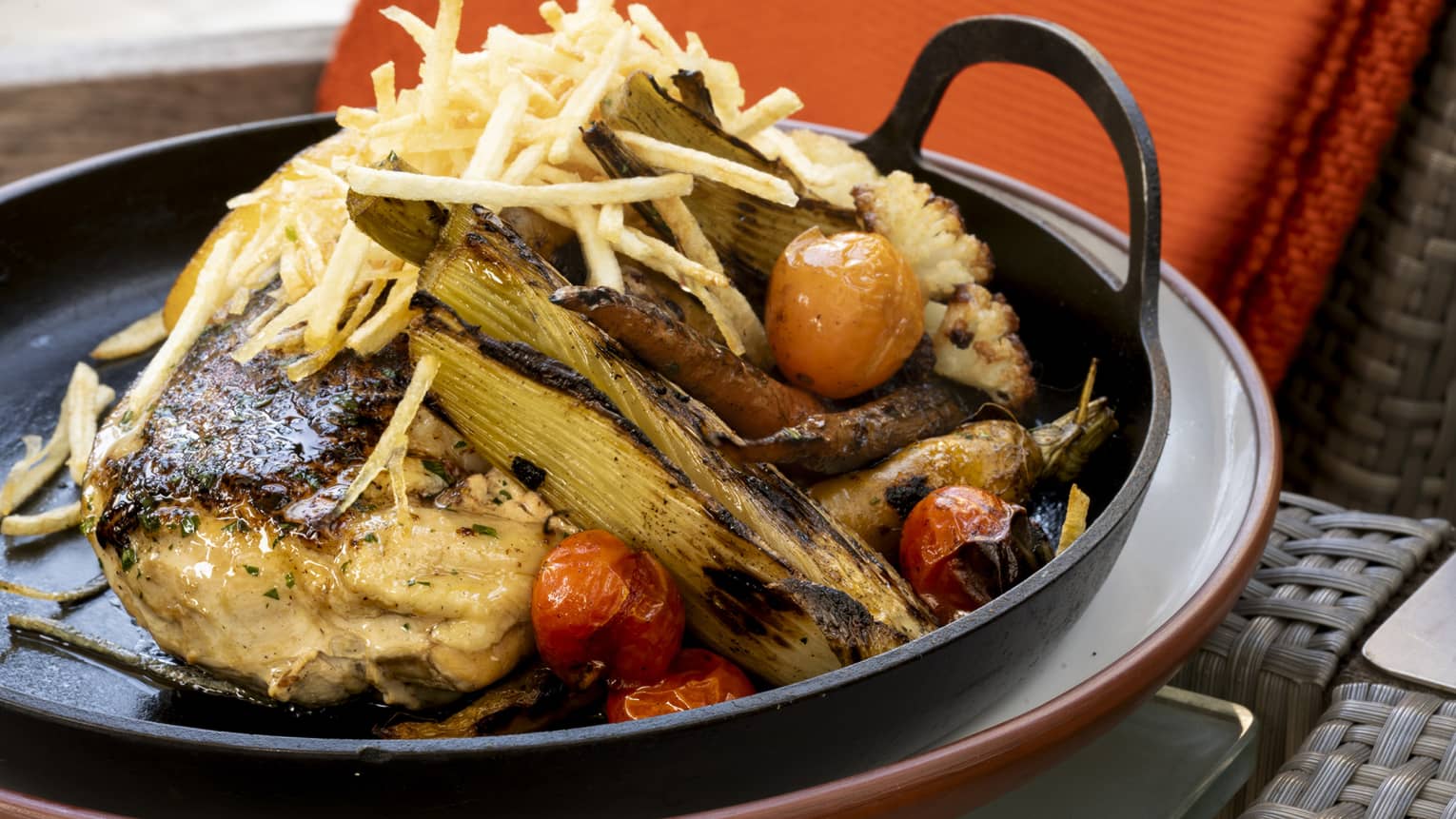 Peito de frangoServido com curry de lentilha turca e legumes assados