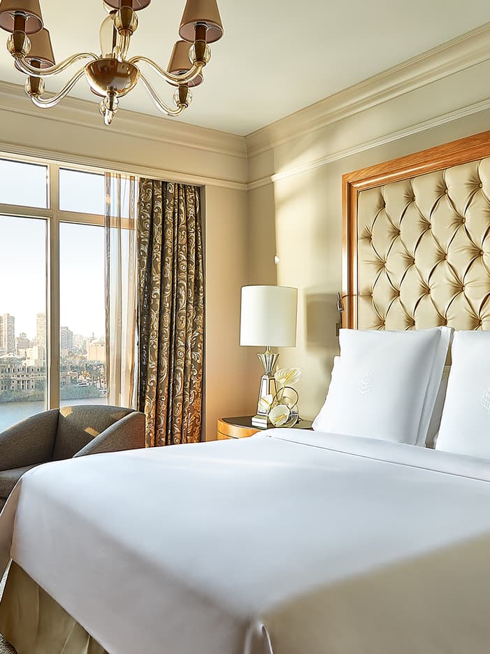 Relaxe neste refúgio espaçoso e cuidadosamente projetado, e maravilhe-se com alguns dos pontos turísticos do Cairo sem precisar sair da cama graças às janelas do chão ao teto. Com uma sala de estar que se abre para um grande terraço, admire a ampla vista do famoso Nilo e desfrute do cenário dourado à luz do sol.