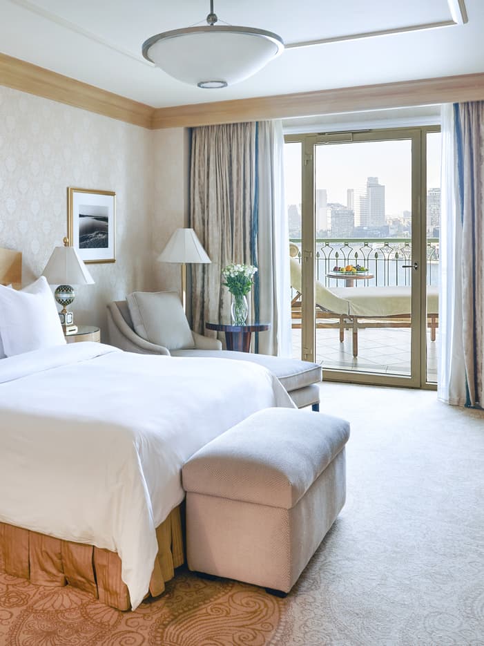 Desfrute de todo o conforto nesta elegante suíte, na qual as vistas mágicas do Nilo e dos pontos turísticos do Cairo fazem parte da decoração. Aprecie o terraço privativo e também as obras de arte contemporâneas dos principais artistas egípcios no interior da suíte. Com amplo espaço para entretenimento, trabalho e relaxamento, esta suíte é a base ideal para férias em família ou estadias de negócios.