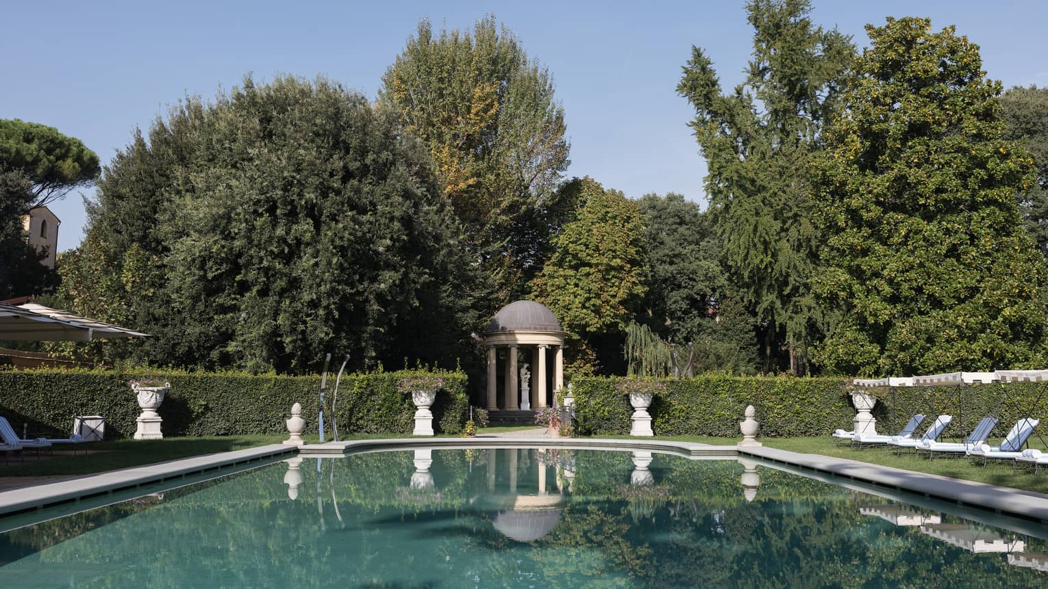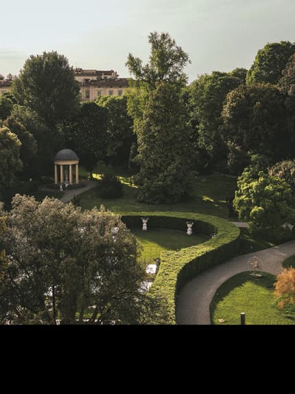 O amplo jardim do hotel, com encantadoras estátuas, fontes e até mesmo um pequeno templo Jônico, foi criado no século 15 e mantém toda a antiga beleza (complementado por uma moderna piscina). Após séculos fechado, o jardim agora está aberto para passeios em meio às centenárias árvores ou para subir a colina para um jantar romântico com vista para o Duomo.