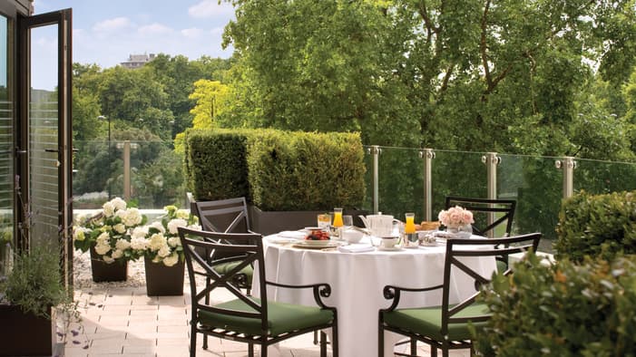 Aproveite o melhor de Londres em grande estilo com nossas suítes de luxo. Estas suítes amplas e bem decoradas se abrem para terraços privados ou semi-privados, oferecendo o cenário ideal para reuniões de família ou de negócios ao ar livre.