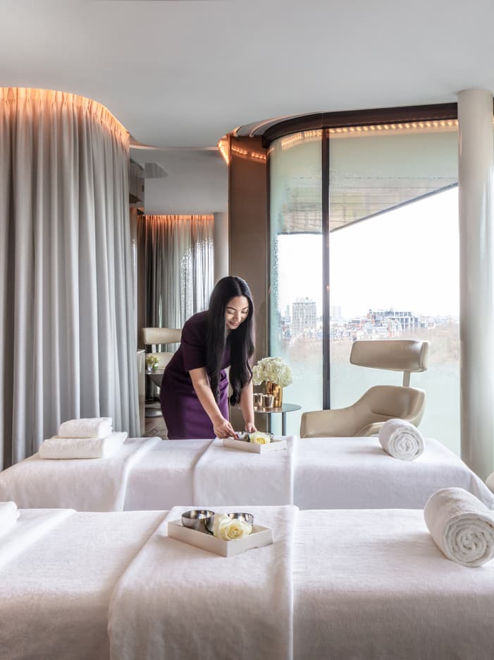 Deixe a luz entrarAproveite a luz natural enquanto admira as famosas paisagens de Londres. As salas de tratamento do nosso spa oferecem janelas que vão do chão ao teto.