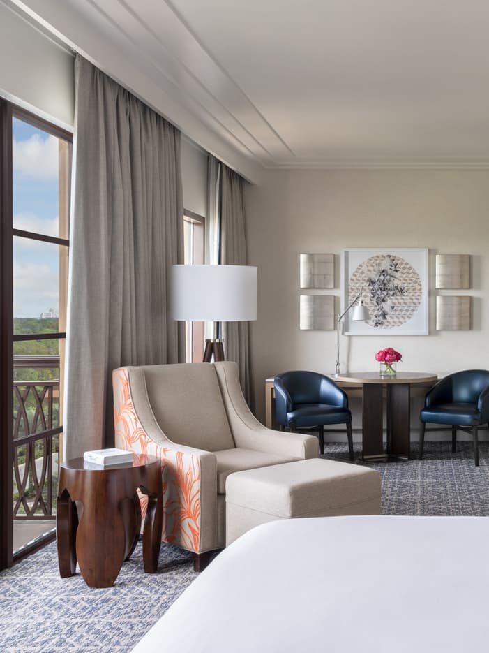 Recoste-se na sua cama king size, no sofá ou na varanda privativa com vista para as ruas arborizadas e mansões do nosso exclusivo bairro Golden Oak.