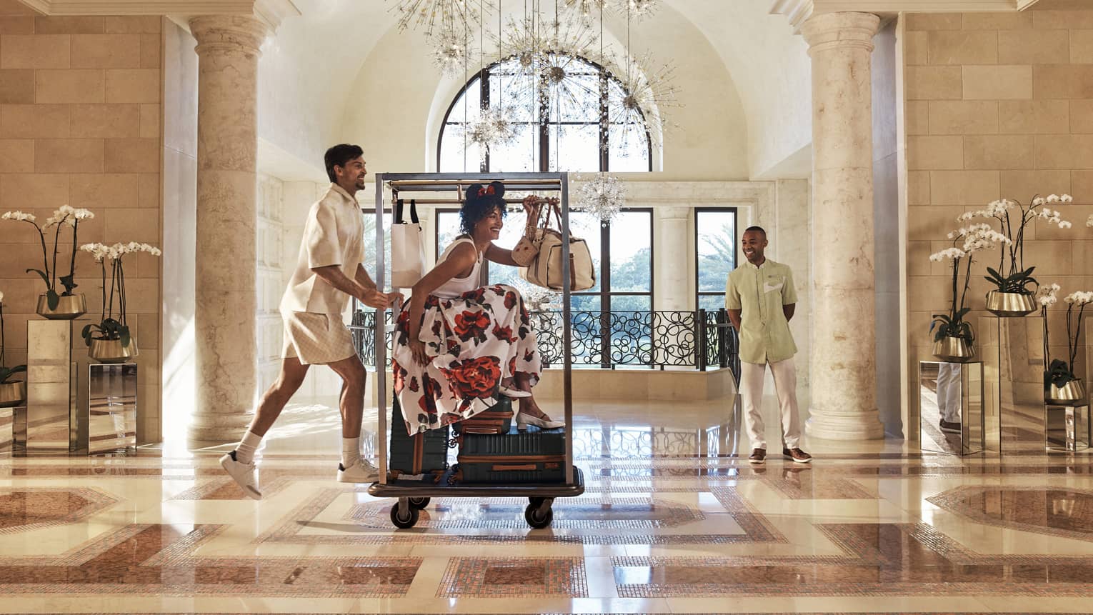 Suíte RoyalA luz do sol flui através de janelas do chão ao teto desta ampla suíte, com área para refeições, sala de entretenimento e opção para conectar até oito quartos adicionais que fazem dela a residência ideal para retiros e celebrações em família.