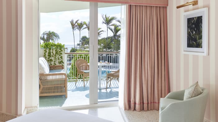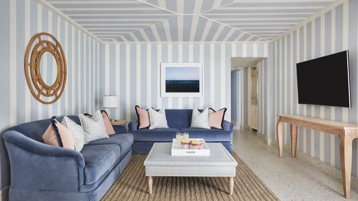 Quisemos abraçar e construir uma narrativa em torno de uma experiência sofisticada na praia. O interior homenageia a localização costeira do resort e a encantadora herança do bairro de Palm Beach.