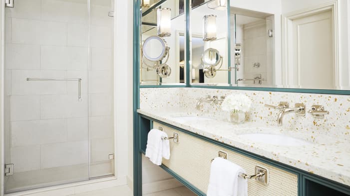 Com uma composição artística feita para evocar o legado do charme típico de Palm Beach e o glamour de meados do século, o novo interior exibe um projeto atemporal inspirado em nossa localização, como os rosas e os verdes naturais que você encontrará durante um passeio pela famosa Worth Avenue.