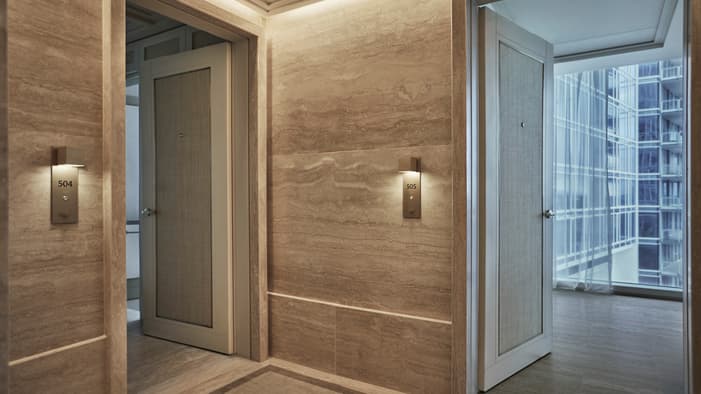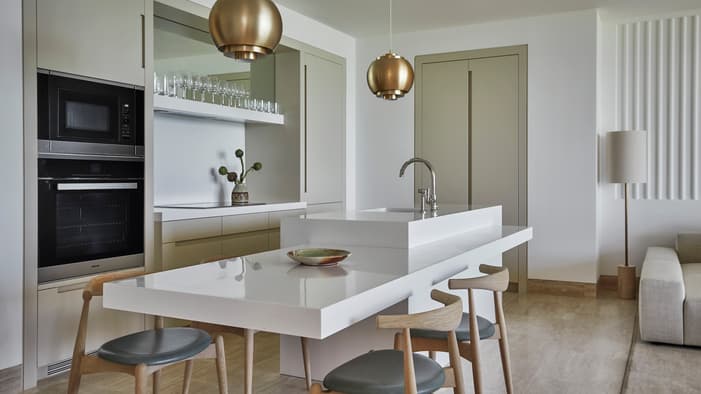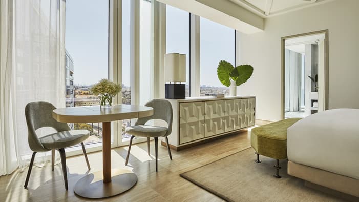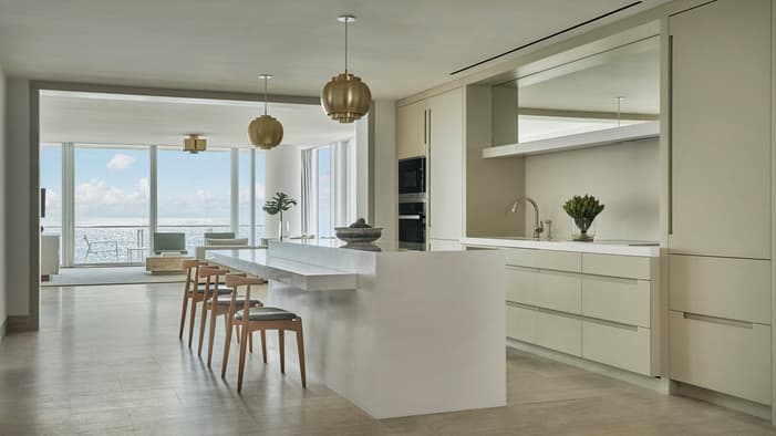 As Suítes Residenciais Specialty oferecem o melhor da vida interna e ao ar livre, com amplos espaços projetados por Joseph Dirand que se abrem para uma grande sacada ou uma piscina e terraço privativos – perfeito para reuniões familiares e férias em grupo com amigos.