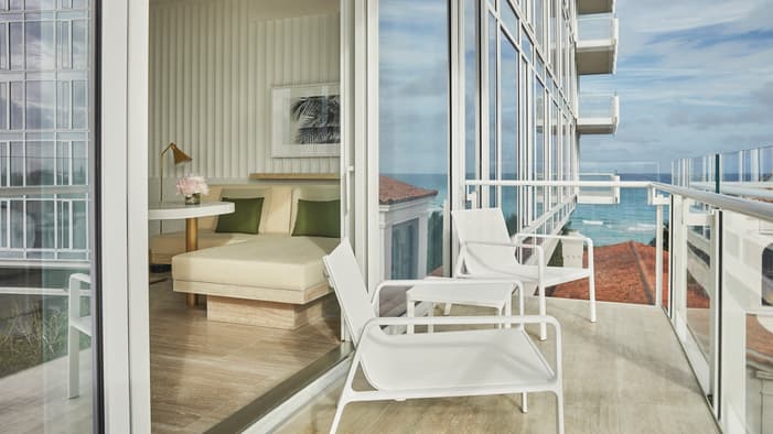 Em Surfside, nosso típico hotel e suítes – projetados por Joseph Dirand – oferecem vistas deslumbrantes do Oceano Atlântico ou da cidade através de janelas do chão ao teto. Desfrute de uma paleta de cores refrescante nos quartos; do luxo cheio de alma dos bangalôs com vista para a praia e para a piscina; e da elegância ampla das suítes, perfeitas para estadias prolongadas e entretenimento privativo.